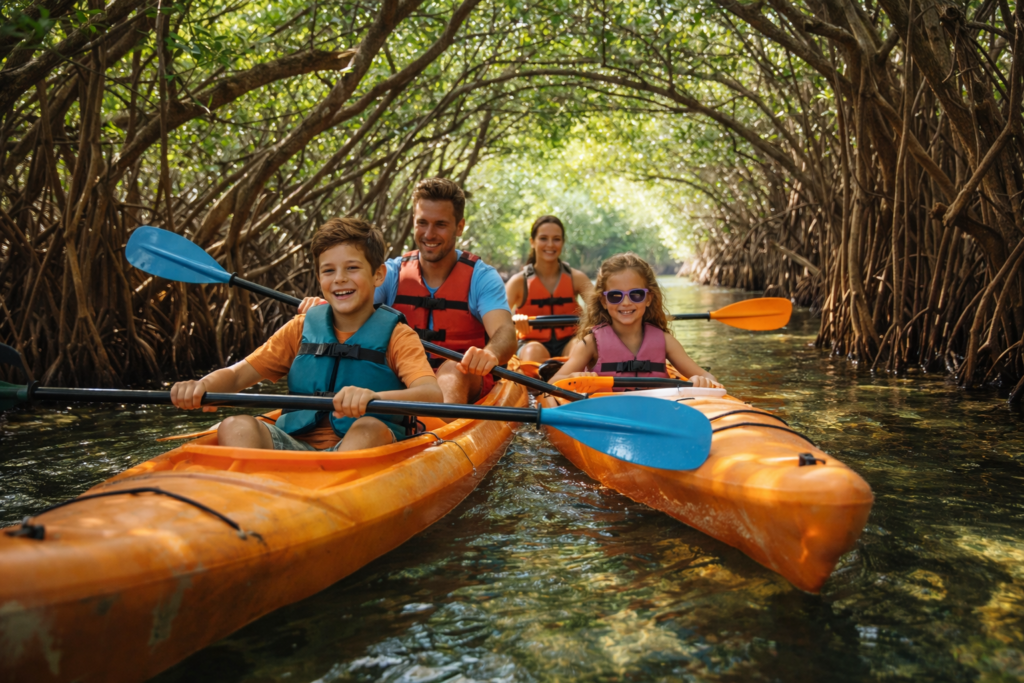 These guided tours allow visitors to paddle through narrow waterways surrounded by tropical vegetation. Wildlife sightings often include birds, fish, and occasionally dolphins or manatees.